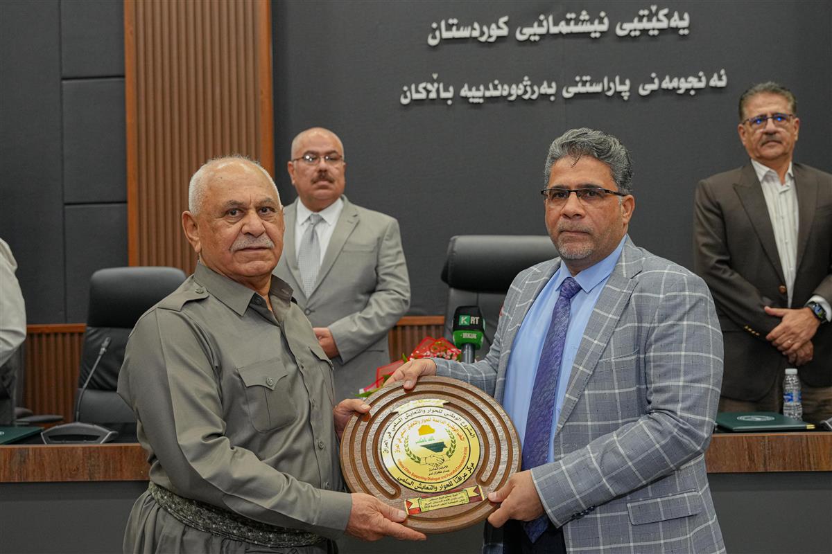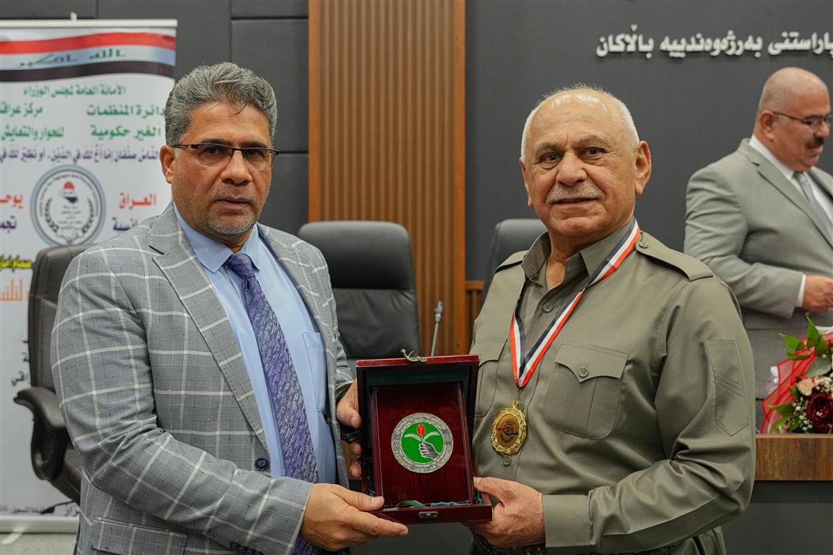 وفي جانب من اللقاء، أشاد كل من سربست توفيق رئيس حركة السلام وعمار گوزار رئيس مركز عراقنا للحوار والتعايش السلمي، في كلمتين منفصلتين، بدعم الشيخ جعفر شيخ مصطفى لعمل منظمات المجتمع المدني وتسهيل أعمالها وأنشطتها، ومن هذا المنطلق جرى تقديم درع مركز عراقنا للحوار والتعايش السلمي، فيما قدم شيخ جعفر شيخ مصطفى، شعار الاتحاد الوطني الكوردستاني.
