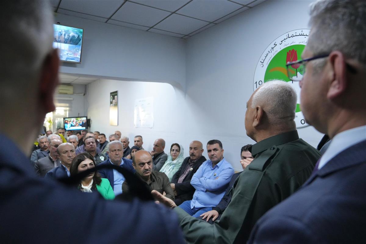 لەبەرانبەردا، لێپرسراو و کادیرانی بازنەکان، سوپاسی رێنمایی و هاندان و دەستخۆشییەکانی هەڤاڵ لێپرسراوی ئەنجومەنیان کرد کە بەردەوام پاڵپشتی ئۆرگانە جیاجیاکان و کادیرانی حزبە، هاوکات باسیان لە بەدەنگەوەهاتنی ئەرێنیانەی کۆمەڵانی خەڵک و ئامادەکارییەکانیان کرد بۆ تۆمارکردنی نەبەردییەکی گەورەی دیموکراسی و دوپاتیان کردەوە کە تەواوی تواناکانیان چڕدەکەنەوە بۆ سەرخستنی لیستی شەهیدان.